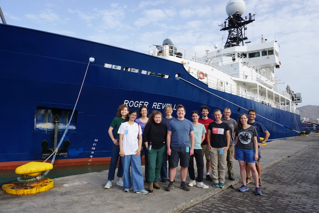 The R/V Revelle set sail today for Chain transform fault in the equatorial Atlantic ocean, as part of an NSF-funded project to study the dynamic behavior of a slow-slipping oceanic transform system. Prof. Jessica Warren is chief scientist of the expedition, which will collect samples by rock dredging and survey the fault using the autonomous underwater vehicle Sentry. Two expeditions over the past year on the R/V Langseth have already collected multi-channel seismic and ocean bottom seismometer datasets along the Chain transform fault.