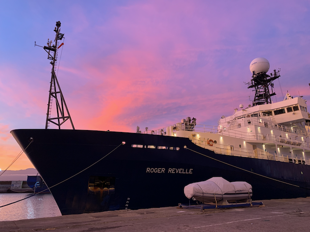 Expedition RR2509 to Chain transform fault concluded successfully today with arrival of the R/V Revelle in Porto Grande, Cape Verde. As chief scientist, Prof. Jessica Warren lead the 32 day expedition to sample and survey Chain transform fault in the equatorial Atlantic ocean. This project is funded by the US National Science Foundation.